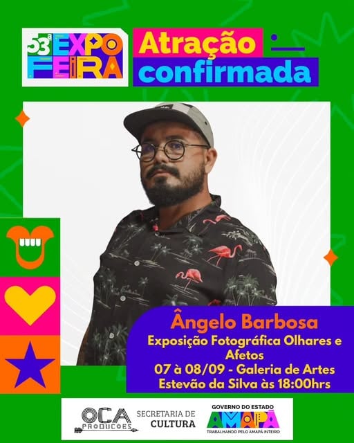 A 53° Expofeira do Amapá recebeu, nos dias 7 e 8 de setembro de 2024, a exposição "Fotografia Olhares e Afetos", do renomado fotógrafo Ângelo Barbosa. O evento aconteceu na Galeria de Artes Estevão da Silva, a partir das 18h, e emocionou o público com 10 fotografias que capturam a essência do cotidiano por meio de uma abordagem poética e acessível. As imagens, tiradas tanto com câmeras fotográficas quanto smartphones, reforçam a ideia de que a fotografia vai além dos equipamentos, valorizando a sensibilidade e a criatividade.